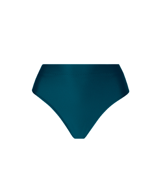 - Slip hoog in de taille in uni stof met reliëf - Zeer hoog uitgesneden aan dijen - Ceintuur aan taille