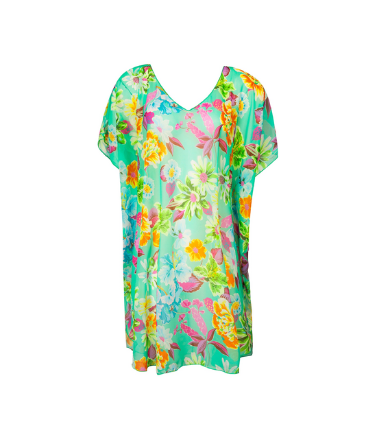 - Poncho in bedrukte voile - V decolleté