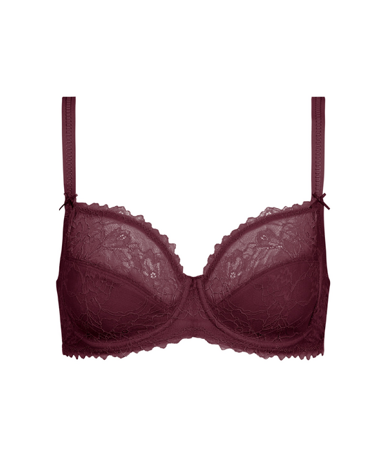 - 3/4 de BH - Met zijpand - Zonder vulling - Met beugel - Elastische stretch-kant op de cups - Haak-en-oogsluiting, drie verstelmogelijkheden - Verstelbare schouderbandjes